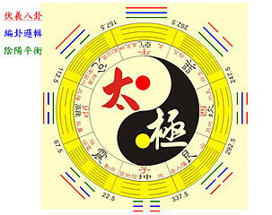 From Taiji, the polarities of yin and yang, and thus the opposites, arise from the interplay between change, movement and mutual penetration, and thus the world.