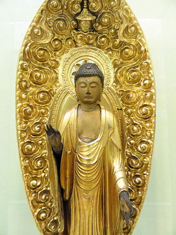 Amitābha(Sanskrit: [əmiˈt̪aːbʱə]), also Amida or Amitāyus) is a celestial buddha a of Mahāyāna Buddhism. Amitābha means "Infinite Light" so Amitābha is also called "The Buddha of Immeasurable Life and Light".