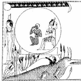 The Greek Herodotus wrote of a tomb at eight meters depth, supported by the Bir columns, in which Osiris was laid. When this tomb was actually found, a symbolic stone rack without a corpse was found. (Osiris is also often represented between Isis and Nephthys)